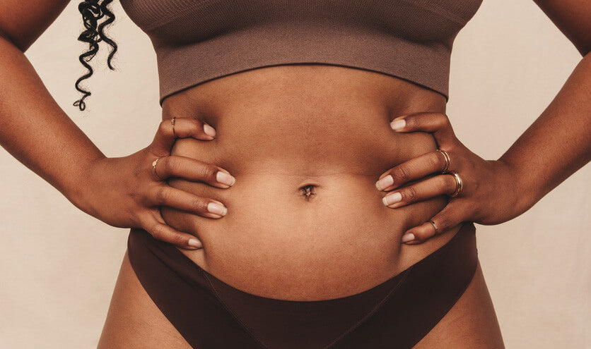 YOUR STOMACH AND THOSE STRETCH MARKS WON'T HAVE A CHANCE WITH OUR WAIST SLIMMING, CELLULITE & STRETCH MARK CREAM COMBO.